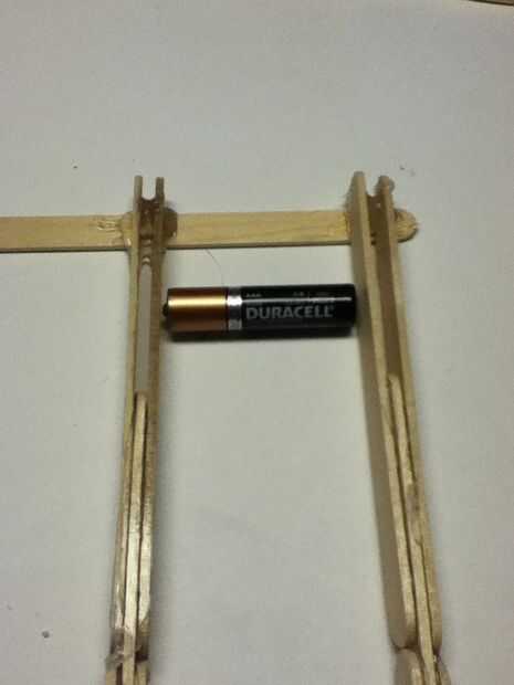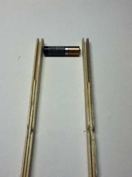 Sobre todo seguir las imágenes, son en orden. Usted necesita tomar dos de las bases más grandes y difunde hacia fuera en los extremos opuestos de una batería (cualquier tamaño que desee), dejar una pequeña sala y luego pegarlos en un palito normal. Luego hacer lo mismo con la parte inferior. Luego hacer lo mismo para los otros titulares de la batería hasta que haya tantos como quieras. Ahora vas a necesitar las bases más pequeñas. Usted entonces pegamento estas abajo paralelo a las bases grandes como se muestra en las fotos. Estas son para que las baterías no caigan fuera de la parte delantera. Repita este proceso tantas veces como necesites para todos de su batería con las ranuras.