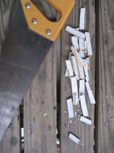 Si desea utilizar los "rayos" o las piezas de madera finas, medias como soporte funcional de las clases, podría quitar parte del rayo para dejar un pequeño espacio entre la madera y la pared. Lo hice con una sierra de mano cutre, un cuchillo y un papel de lija por corte pequeñas ranuras en la madera y luego ajustar apagado los pedazos uno a la vez. Luego lija esta parte trasera para que sea suave para que no atoren las bufandas. Hay 1 millón mejores formas de hacer esto, pero mi presupuesto era muy limitado y no quiero invertir en un montón de herramientas. Así, sí. Paso opcional aquí.