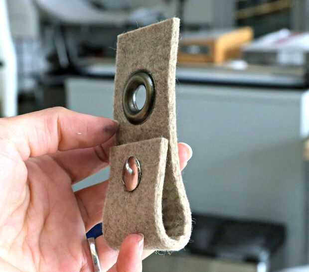 Decidí que quería un final circular enmarca mi ojal, así que corte un semicírculo de ello. Me imagino que esto le ayudará a cualquier desgaste que de lo contrario hubiera resultado en el fieltro o cuero y muy usado en las esquinas.