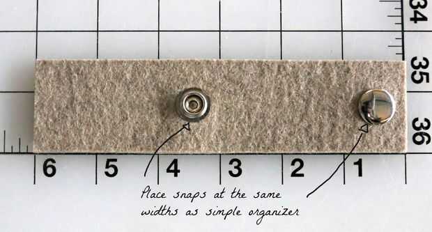 Luego, coloque ambos extremos de broches de presión de unas 3 pulgadas de distancia, la misma forma que para el organizador Simple.