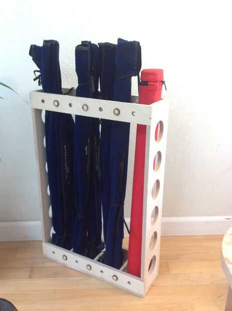 aquí es otro proyecto CNC rápido de sólo un pequeño trozo de madera contrachapada de 1/2 y una clavija de 1/2 pulgada. Este estante se utiliza para organizar cañas de mosca que se almacenan en tubos o calcetines. Puede ajustarse el tamaño del divisor con los partes movibles desprendibles clavija. La inserción de la espiga es gruesa y fuerte lo suficiente como para utilizar como asa, así que la rejilla se puede fácilmente mover en y fuera de un armario.
