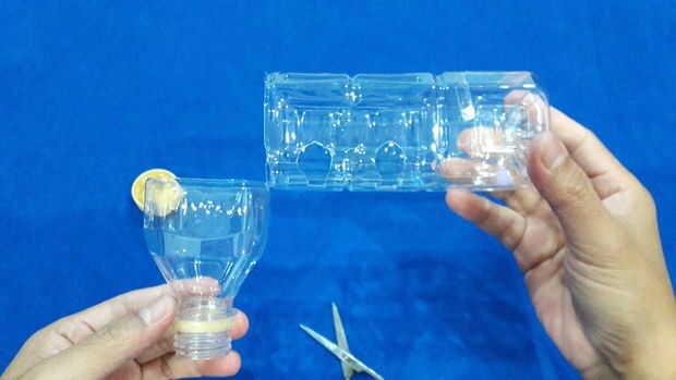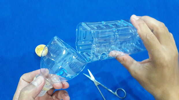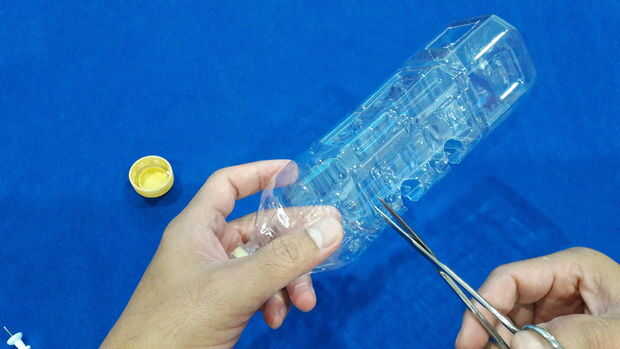 Cerca de la boca de la botella, me corte tres lados pero dejar un lado sin cortar.