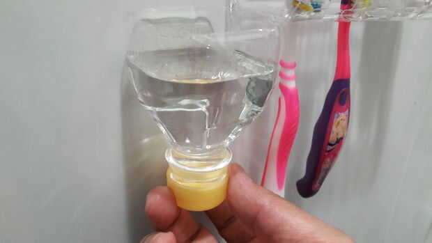 Si quiero eliminar la solución desinfectante, simplemente afloje la tapa un poco y la solución se descarga hacia abajo. Apretado de nuevo y vuelva a llenar la Copa con una nueva solución.