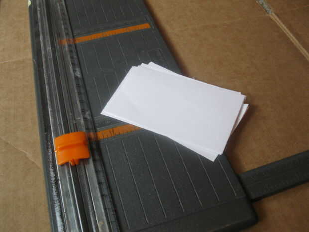 En segundo lugar, toma el cortador de papel (o tijeras) y cortar el papel a 2 1/2 pulgadas por 4 pulgadas.