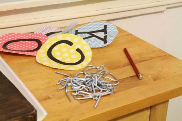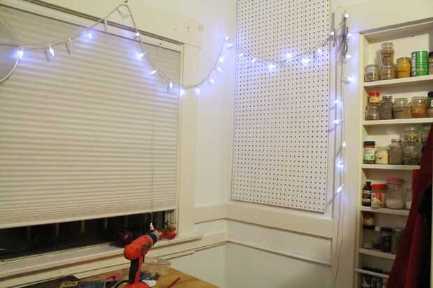 Tenía Tyler me ayudan a levantar mientras que marque los orificios de esquina en el perforado en la pared. Sólo comentar porque estaba demasiado impaciente para obtener el nivel o medida. : P el gancho kit que compré para el pegboard vino con espaciadores de plástico para ir detrás de la Junta y que sea más fácil para que usted pueda insertar y retirar las clavijas, por lo que colgué con aquellos.