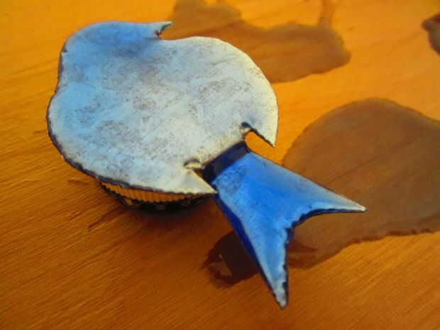 He esbozado algunas aves y elegido el diseño que gusta. El primero que hice fue demasiado grande, pero seguí alrededor que mi maniquí de pruebas experimentales para la capa de la resina. Cortar el aluminio para que el pájaro tiene una mano firme y pequeños cortes, pero es posible hacerlo con las tijeras. Podría dejar la plata de aves, o que el pájaro de un material totalmente diferente si quieres, me quedé con un tema de metal.