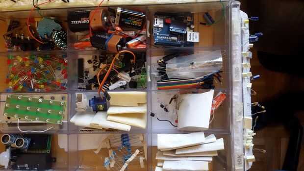 Necesito un organizador de la electrónica. No, sin embargo, necesito algo cojo o grandes o complicadas. Por lo tanto, me hice uno.Con este carrito de dispositivo, experimentó con algunos materiales nuevos (para mí) y estoy contento que hice. Llegué a