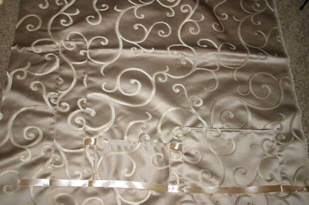 coser los bolsillos y en hierro para ver mejor, luego colocar la cinta en el borde posterior de los bolsillos y coser la parte superior de la cinta en cada lado de todos los bolsillos. Ahora usted tiene una pequeña área organizada donde puede colgar plumas, marcadores, notas, tarjetas, pernos de seguridad o lo que gustes.