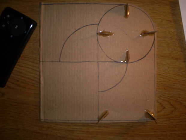 Tu base debe utilizar un poco más gruesa de cartón. Usé 1/8 de pulgada de una vieja caja de set de poker. Simplemente imitar el diseño de su papel. Si tienes algo como notas adhesivas que puede utilizar como punto de partida que permite suficiente espacio para que encajen en el. Luego simplemente estimar el resto. y cortar la base.