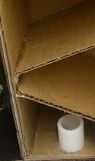 Tomar el carrete de la lista de materiales y colocar debajo del estante inferior. El carrete debe ser de 1" en desde el borde izquierdo de la caja. Coloque la cinta sobre el carrete.
