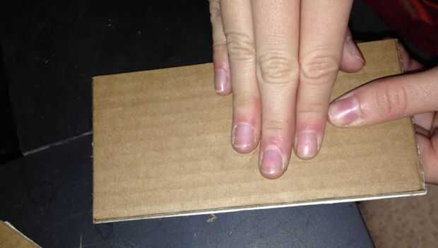 Repita este paso cuatro veces más hasta que todos los 8 pedazos de cartón han sido pegados con otra pieza. En total se tienen cuatro trozos de cartón.