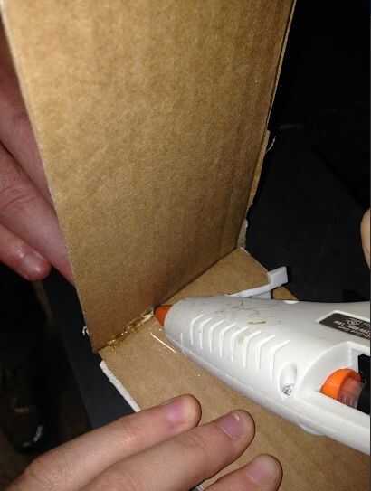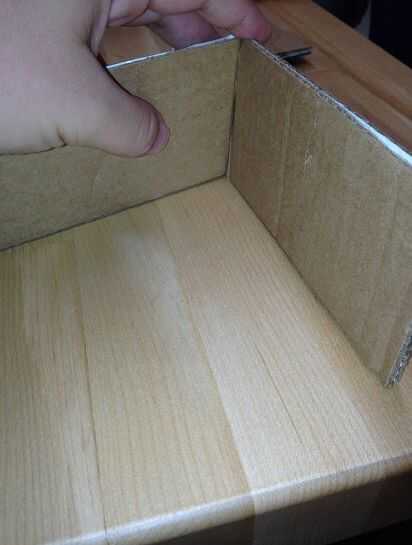 Tomar dos de las "paredes" (3 X 6 pulg.), hacer forma de L, conectando ambos lados de 3" entre sí. No se olvide de pegar el interior pliegue, así como el exterior, verificando que las piezas son robustos.