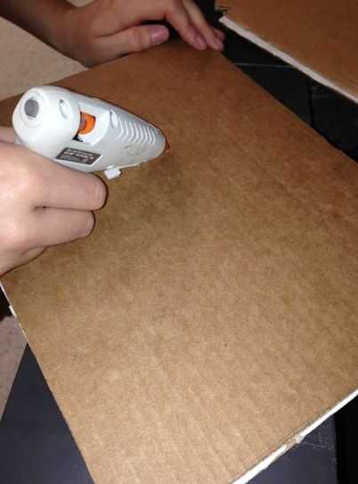 Tomar dos de los cuatro pedazos de cartulina y pegarlos juntos. Hacer lo mismo que hiciste con las paredes, excepto usar más pegamento.