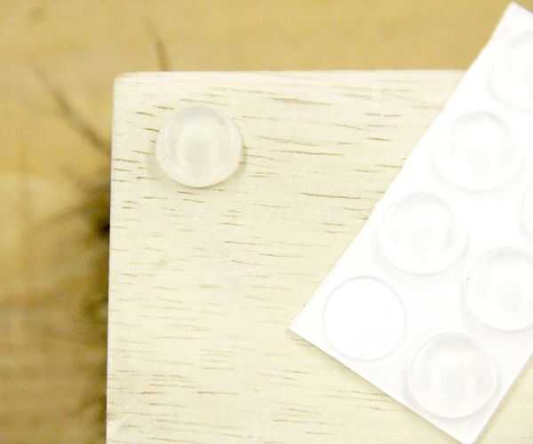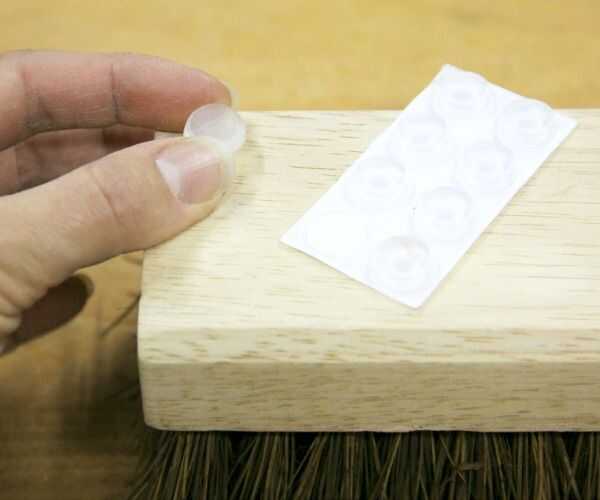 En la parte inferior de las dos cabezas de la escoba, meter un pie de goma en cada esquina - aproximadamente 1/4" en de los bordes.