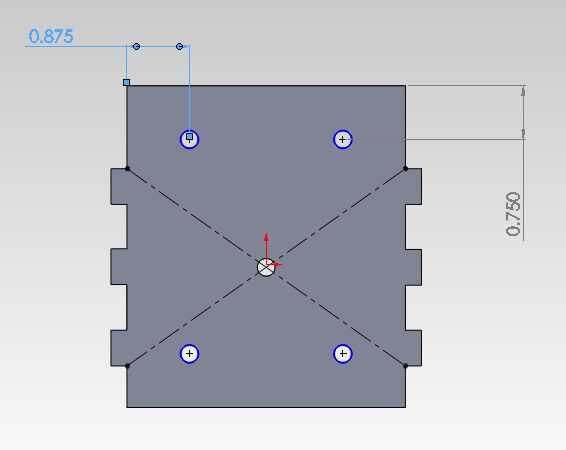 , Necesitará un total de cinco agujeros en la pieza de atrás cabezal de taladro.  Cuatro de estos agujeros será para los tornillos que sujetan la pieza de montaje del LED para atrás cabezal.  El agujero en el centro de la pieza se utilizará para el potenciómetro.  Todos los agujeros son 1/4 de pulgada de diámetro.  Taladre los orificios según la imagen de este paso.
