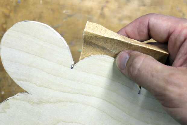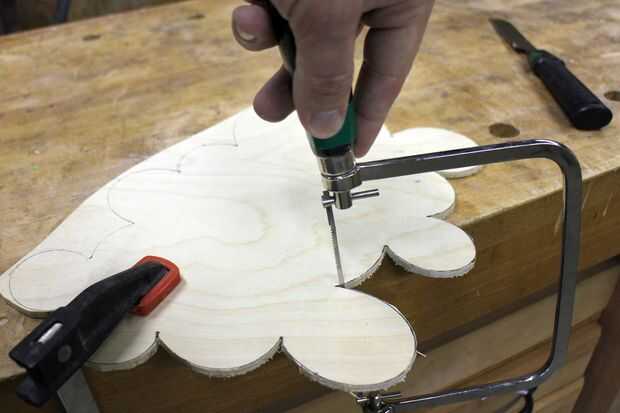 Siguiendo el contorno con una sierra de marquetería la base fue cortado de la madera contrachapada fina.