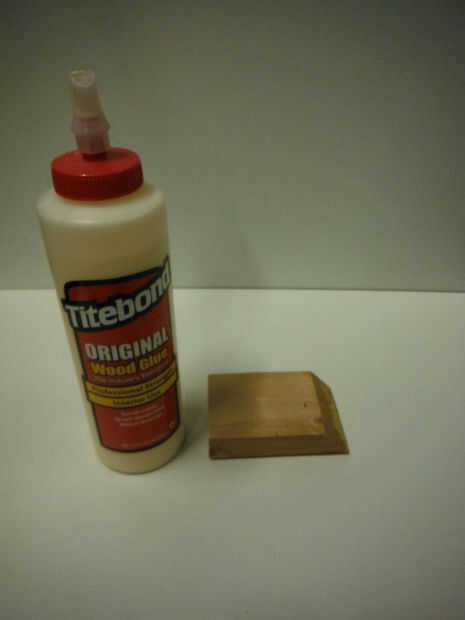 Por último, tome el pequeño pedazo de madera y pegar el lado de ángulo de cuarenta y cinco grados a la parte posterior del organizador para que puede levantarse.