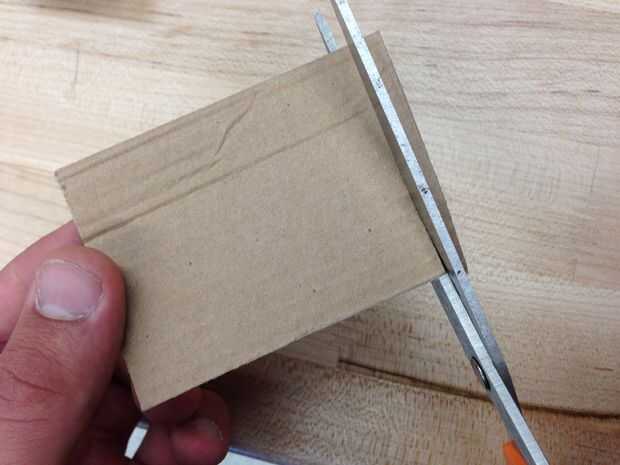 Corte cuatro piezas de 2inx4in de cartón con unas tijeras.