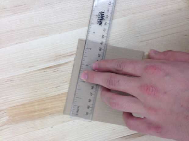 Mida divisores (2) para ser colocados en la caja de zapatos. Use la regla para hacer ambos divisores 4inx4in.