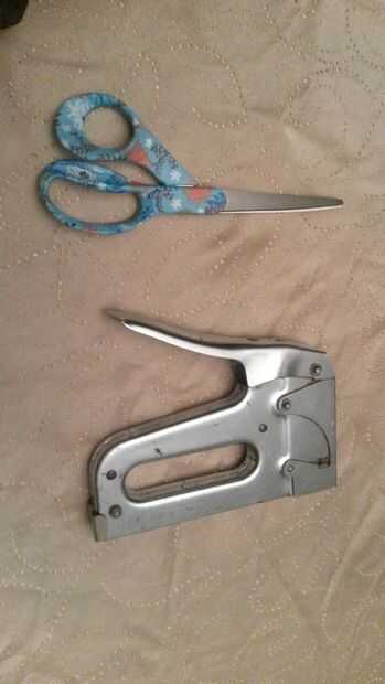 Entonces, grapas a la tela en la parte posterior de la plataforma. Sostuve la burla de tela como sujetado con grapa. A partir de la parte superior y mi forma de trabajo abajo unilateral y luego el otro lado y terminado con la parte inferior.