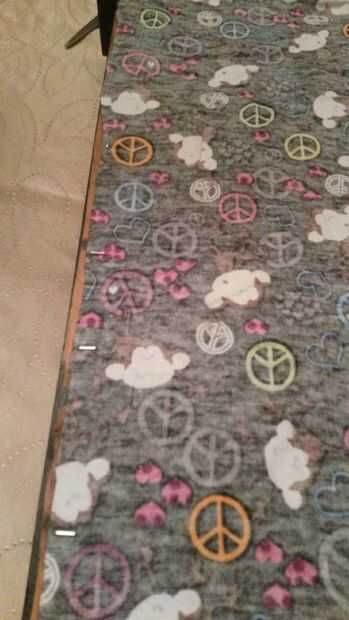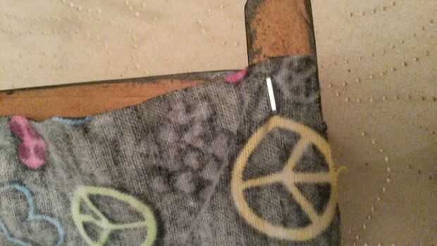 Una vez que la plataforma estaba bien cubierto y seco puso mi retazo en la plataforma y cortar para que quepa.