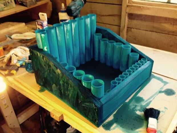 7. Entonces pegué caliente todos los tubos en el interior borde de la caja.