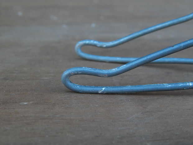 He diseñado los ganchos cada uno se apoya en dos puntos para evitar que tuerza. Estos dos puntos son lo suficientemente apretados como para agarrar la repisa de alambre.