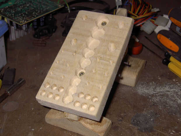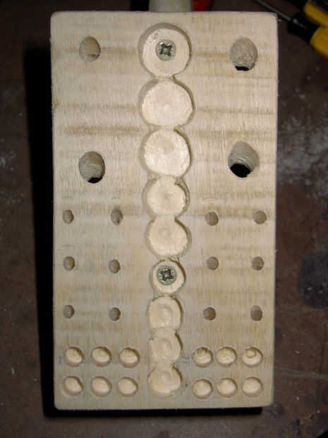 • Como veis en la foto que hice los agujeros para las cabezas de destornillador, no usarlos pero me los puse allí para utilizar ese espacio