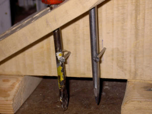 • Si tus cabeza plana destornilladores tienen una cabeza que es más grande que el eje tendrá que agrandar los agujeros y esto hará que tus destornilladores inclinarse en un ángulo, así que lo escriturado es la adición de 2 clavos para ayudarles a permanecer en posición vertical