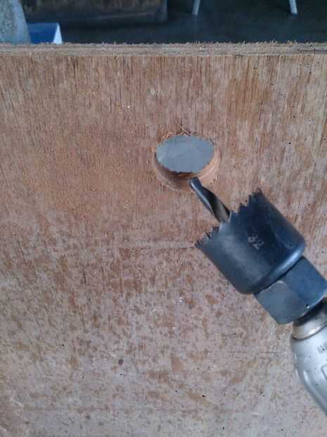 Taladro 2 agujeros con 1" de diámetro, un agujero a la izquierda y un agujero en el lado derecho del tablero. Estos agujeros son donde nuestro stand pipe apretones de la Junta.