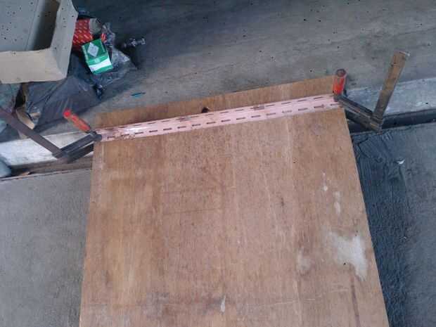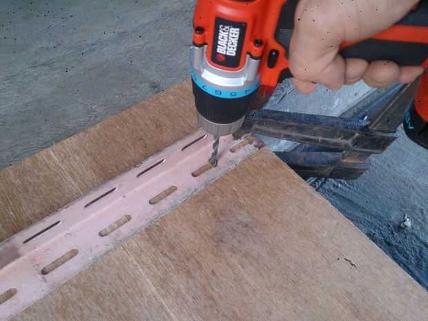 Una cosa para recordar es mantener su empuje hacia abajo la energía durante la perforación. Hay que recordar cuando debe dejar o el taladro se golpeó en el ángulo de hierro y hacer un rasguños muy mala como la mía. Usando una plancha con agujeros es mejor si usted puede encontrar una