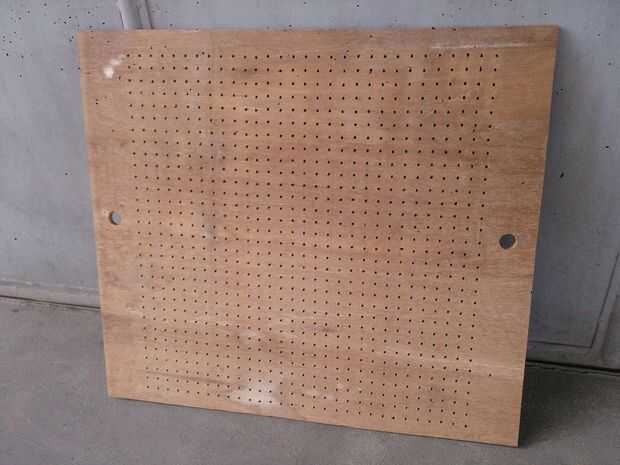 Si usted decide comprar un pegboard, puede omitir este paso. Si usted quiere comprar un pedazo de madera para tu bricolaje pegboard entonces le sugiero que para comprar tablero del MDF que es ampliamente utilizado para la caja del altavoz. Había sido caza un pegboard durante un mes y no pude encontrar uno. Viven en un pueblo tan pequeño como me está presionando mi límite de creatividad al máximo. Decidí hacer uno yo mismo. He encontrado sin utilizar madera contrachapada, media una pulgada de espesor, con lados irregulares, mordidos por las ratas. Entonces yo cortar en piezas más pequeñas, tomé la mejor superficie tan grande como sea posible.