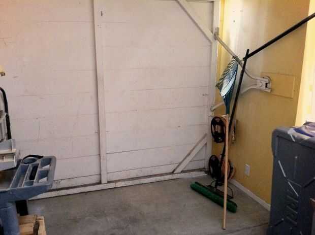 Abra la puerta del garaje. identificar el área claro en la puerta donde puede colgar las herramientas sin chocar con rieles, lámparas u otros objetos cerca de la puerta cuando se abre.