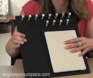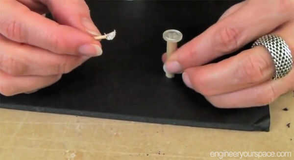 Para collares y anillos, utilicé 1/4" pulgadas de tacos y pegado de botones en los extremos para evitar que la joyería resbale (os adjunto los botones con clavos líquidos). Para adjuntarlos a la Junta de espuma, que utiliza un cuchillo para cortar una x donde quería mis clavijas en la Junta y retirar suficiente material para hacer un agujero ligeramente más pequeño que el diámetro de la espiga. He utilizado clavos líquidos en la parte inferior de las clavijas y había insertada en los agujeros.