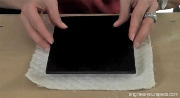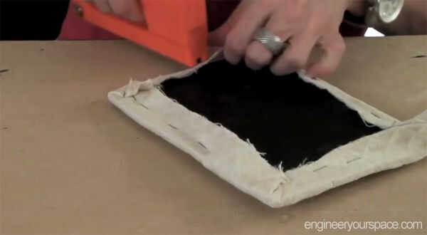 Para la plataforma de la pendiente, he utilizado guata y tela (un tejido suelto tejido funciona mejor) que grapada a un trozo de tablero de la espuma. Usé cinta de doble cara para fijarlo en el tablero de la espuma.