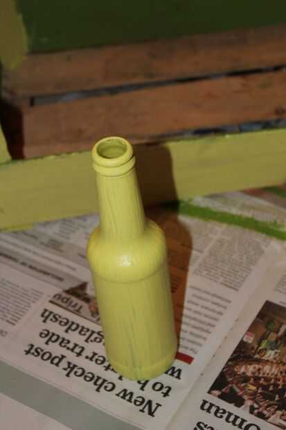 He pintado 2 capas del mismo color en la botella. Deje que se seque después de cada capa. Usé emulsión seda de vinilo. No sería la mejor opción, pero que era el que tenía.