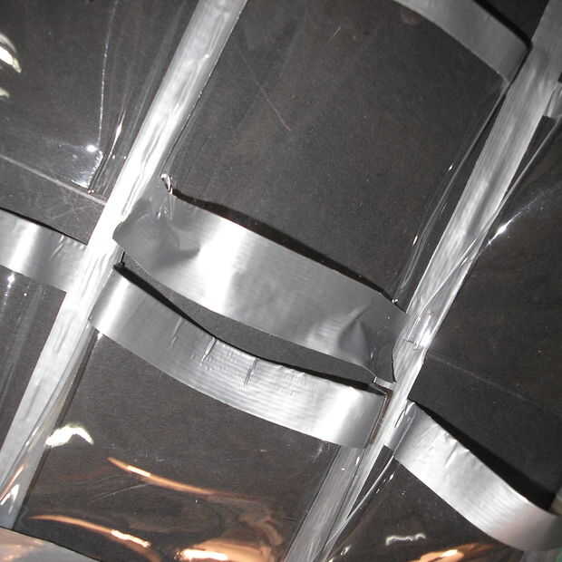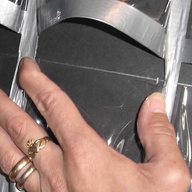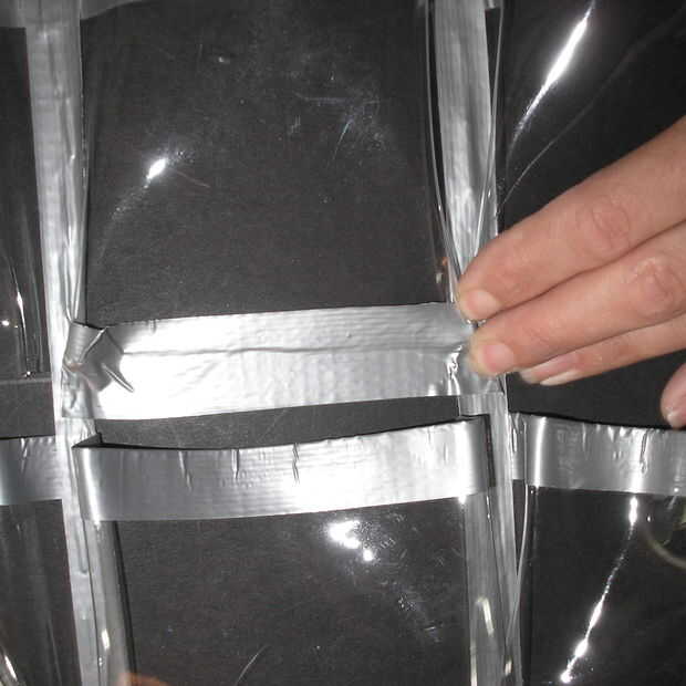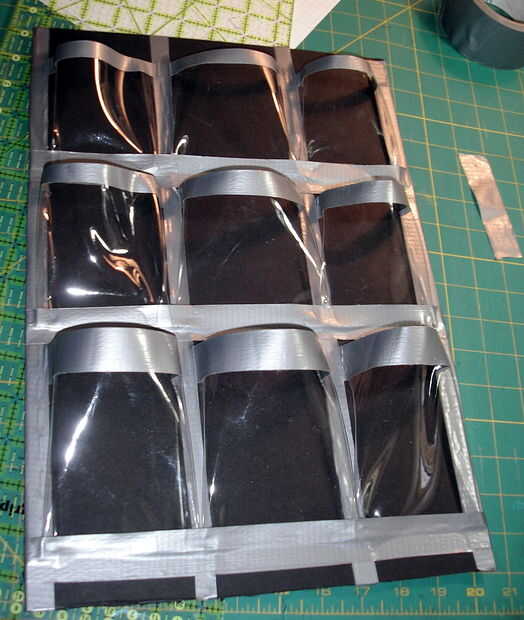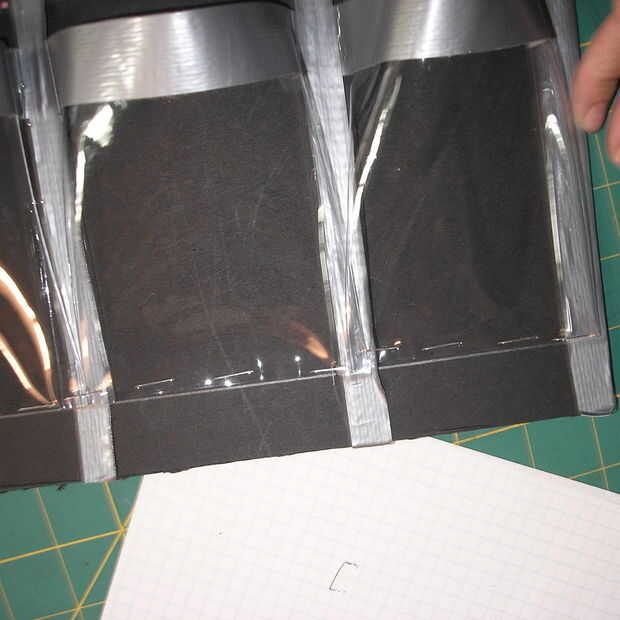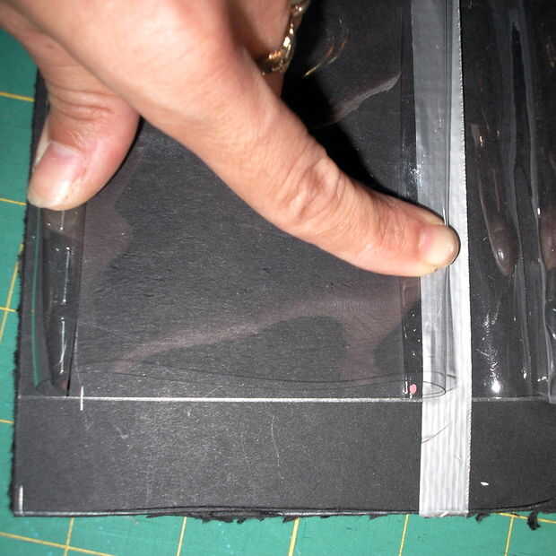 Extensión cada fondo bolsillo individuales uniforme del centro. Cada lado debe tener cantidades iguales de superposición. Grapa o cinta adhesiva a cada bolsillo. Luego la cinta en la parte inferior de cada fila entera de bolsillos para cubrir las grapas.