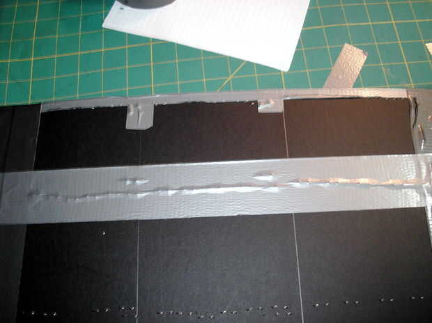 Doble un pedazo de cinta en parte superior (12 pulgadas) del gran bolsillo trasero.