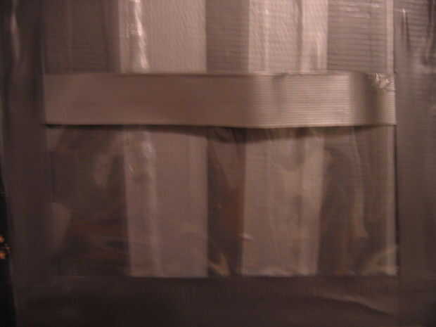 Cinta o grapas primero los lados de la bolsa grande. Extensión del centro a través de los bordes para dar el bolsillo de alguna profundidad. Cinta adhesiva por la parte inferior de la bolsa.