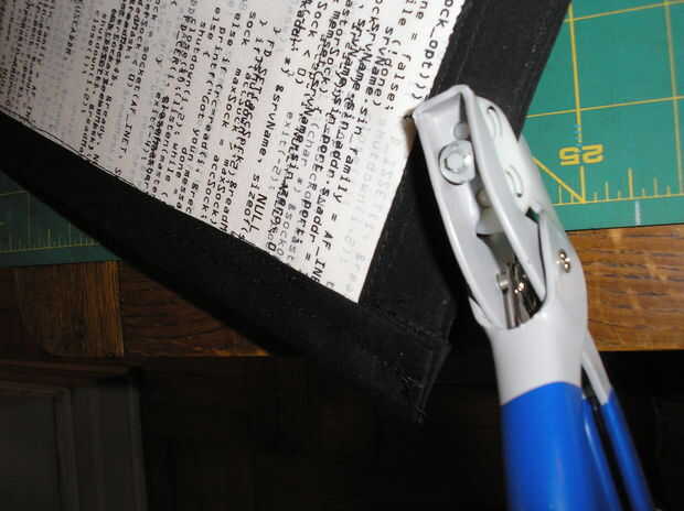 Usted puede necesitar perforar un pequeño agujero a través del material en primer lugar, ya que hay tres capas.
