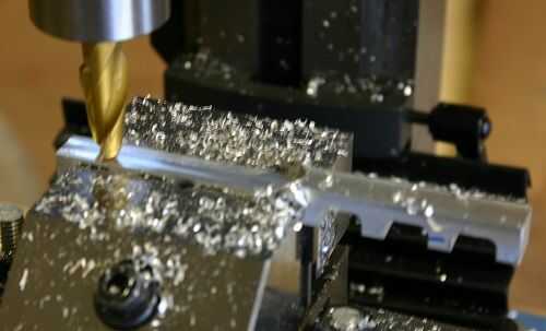- Trabajando solamente en el lado de apoyo, hacer luz pasa hasta el que tenga el espesor deseado. Empecé haciendo 0,03"/ pass con moderado avance/diente, luego quitar el final 0,045" con un 0,02", 0,015" y por último 0,01" profundidad de corte.