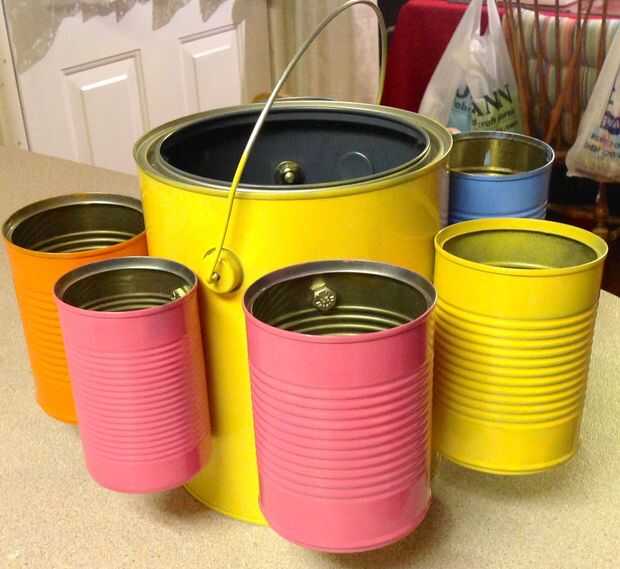 o usted puede conseguir uno en Home Depot por aproximadamente $5) y algunas latas de sopa recicladas (