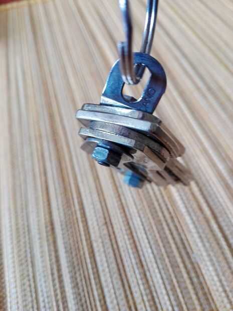 ◾ En el Irán metidas las llaves metemos el ángulo pequeño orientado hacia fuera. (Este hará de argolla para los llaveros). A continuación las llaves y una presencias.
