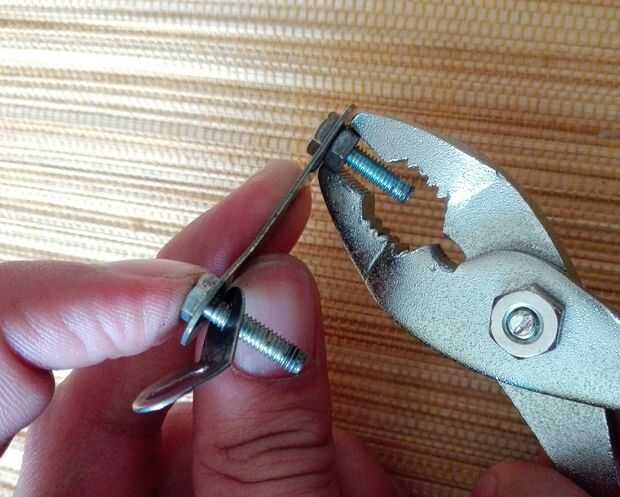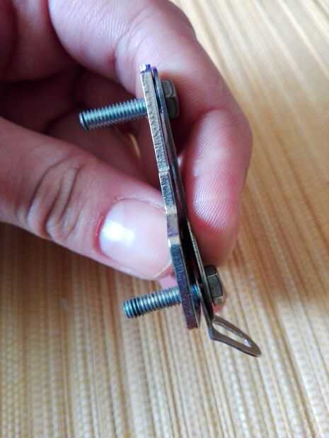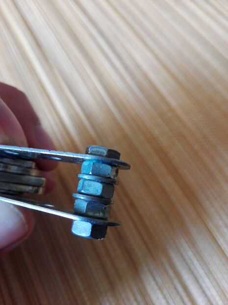 ◾En el otro tornillo una tuerca y con unos alicates la apretamos, despues una GYMNOVA, una tuerca, una presencias y una tuerca.