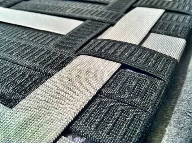 Usé la pistola de grapas y pegamento para sujetar la tela y elástico. Mi esposa tenía algún retazo que ella ya no estaba usando. Establecer una línea de pegamento y coloque a la tela sobre él. Mientras el pegamento está todavía húmedo engrape a la tela a un lado estiramiento hacia el otro y lo básico. Hacer esto para los otros dos lados. Ahora puede colocar el elástico. Utilizar algunos trozos de cartón para mantener las grapas van demasiado lejos en la madera, y por el otro lado.