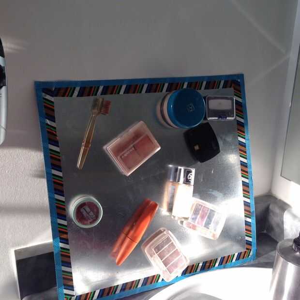 odio el desorden. Y un lugar tengo mucho desorden en mi bolsa de maquillaje. Inspirado por un instructible por deathrouge usuario, decidí tratar de hacer mi propia tabla de maquillaje. Tenía una hoja de galleta que se dirigía a la basura que era idea