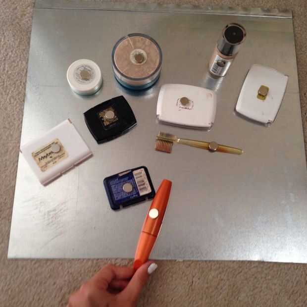 odio el desorden. Y un lugar tengo mucho desorden en mi bolsa de maquillaje. Inspirado por un instructible por deathrouge usuario, decidí tratar de hacer mi propia tabla de maquillaje. Tenía una hoja de galleta que se dirigía a la basura que era idea