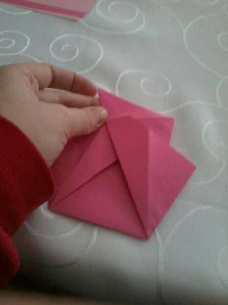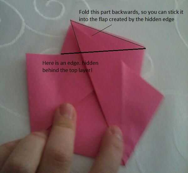 Tomar la tapa en la parte superior (las cosas puntiagudas que acaba doblados) y pliegue el borde puntiagudo de la aleta por debajo. (Foto 1 y 2)