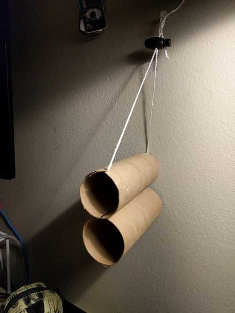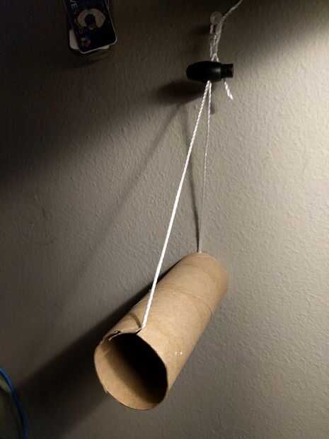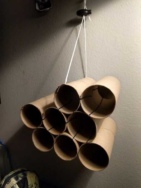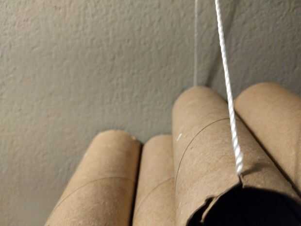 Para fijar la unidad organizacional a la pared usando la cadena, un alfiler y un tope de cable opcional. Corte ranuras en el borde superior de la parte superior del tubo en la parte delantera y la espalda y lazo de la cuerda a través del tubo y en las ranuras. Estas ranuras mantendrá la cadena estable. Recuerde atar dos ens de la cuerda para completar el bucle.
