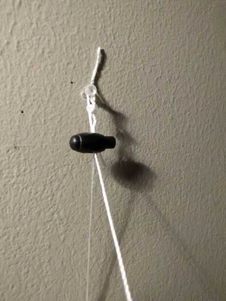 Coloque el alfiler en la pared anterior donde desea colocar la unidad. Cuelgue la unidad por el lazo de la cuerda en el alfiler y ajusta su posición para que la parte trasera es plana contra la pared. Utilice el tapón o binder clip de cable o cinta para crear un bucle en la parte superior de la cadena para colgar en el pasador. Incluso puede utilizar un nudo simple para crear este lazo también.